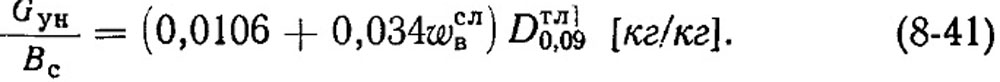 Поскольку уравнение (8-35) удовлетворяет опытным данным, то примем его за основу в дальнейших расчетах возможного количества уноса. Для практических целей удобнее связать dтл с wслг. При wслг /wслв= 6,32, что было задано раньше, получим: